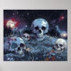 On a dark spooky Halloween night, a graveyard of skulls dot the ground ready to creep out unsuspecting guests who walk the grounds on Halloween.