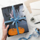 Wrap your gifts in spooky style with this Halloween-themed wrapping paper featuring glowing jack-o’-lanterns, flying bats, eerie branches, and a full moon backdrop. Ideal for Halloween party favours, autumn birthdays, or festive October surprises, this paper adds a touch of frightful fun to any present.