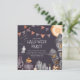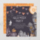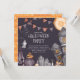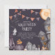 Halloween invitation features a ghost, haunted house, witches broom, tombstone and a witch's cauldron . The words "Halloween Party" are written in a fun and festive font. It's the perfect way to invite your friends to a spooky-sweet Halloween party.