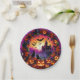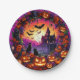 Add a touch of spooky charm to your Halloween celebrations with these vibrant paper plates! Featuring a whimsical design of carved pumpkins, black cats, and bats flying against a full moon, these plates are perfect for any Halloween party. The haunted house silhouette and ornate frame decorated with autumn leaves, skulls, and candles create a festive and eerie atmosphere. Made from high-quality materials, these plates are both durable and disposable, making cleanup a breeze. Ideal for serving snacks, desserts, or main courses, they will surely delight your guests and add a festive flair to your table setting.