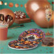 Add a touch of spooky charm to your Halloween celebrations with these vibrant paper plates! Featuring a whimsical design of carved pumpkins, black cats, and bats flying against a full moon, these plates are perfect for any Halloween party. The haunted house silhouette and ornate frame decorated with autumn leaves, skulls, and candles create a festive and eerie atmosphere. Made from high-quality materials, these plates are both durable and disposable, making cleanup a breeze. Ideal for serving snacks, desserts, or main courses, they will surely delight your guests and add a festive flair to your table setting.