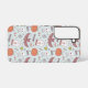 This design is a Halloween-themed pattern with a whimsical and playful design. The background colour is a soft pastel blue, and it is filled with various Halloween icons and symbols.