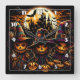 Spooky Halloween scarecrows with glowing pumpkins Square Wall Clock