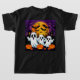 Eerie Halloween illustration featuring ghosts, pumpkins, a haunted house, and full moon. Perfect for capturing the haunting and festive spirit of Halloween.