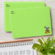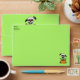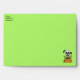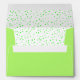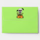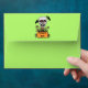 This invitation sized envelope is perfect for your Halloween party invites. The envelope is bright green with a spooky white skull with a menacing face on the front who has tree branches for arms and holding an orange sign that says beware. the skull is also on the back flap holding a sign that says Halloween Party which you can customise the template along with your return address on the front. The inside of the envelope is white with bright green polka dots.