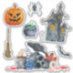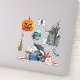 This hand-drawn watercoloured Halloween themed set of stickers featuring a spooky Haunted House, jack o lantern. witches broom, bubbling cauldron, bat and raven with assorted witchy stuff are perfect for Halloween. You can choose between matte white or glossy transparent vinyl; please note that white ink is not printed on either substrate. The stickers removable, low-tack adhesive leaves no sticky residue, they are printed with solvent inks that are fade-proof, water-proof and scratch-resistant, making them compatible with and ideal for decorating water bottles, helmets, cars, skateboards, bikes, laptops, phones, tablets, binders, notebooks, journals, lockers, water bottles and more! They are available in 6 different sizes, there is a 0.125" border around each sticker to help it stand out against any background! © Julie McIver