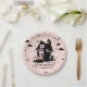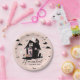 Fun Halloween theme party paper plates. Our design features a spooky house with a door featuring a photo placeholder to display your own Halloween family photo. Flying black bats and pink spooky ghosts further enhance the Halloween theme. Halloween paper plates feature bats, windows, ghosts, clouds, and text for a truly unique and fun design. Designed by Moodthology.