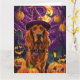 Spooky Irish Red Setter Halloween Witch Pumpkin Card