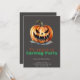 This invitation sets the mysterious tone of Halloween with its dark grey background, featuring a creepy jack-o' lantern centred at the top. The design is sure to pique curiosity and excitement for a pumpkin carving celebration filled with spine-tingling fun.