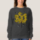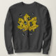 Weird creepy Halloween women's sweatshirt with botanical art of a yellow leaf and strange spooky eyes behind it.