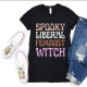 SPOOKY LIBERAL FEMINIST WITCH. You bet I am! If you are too then you'll want this shirt in your wardrobe. It keeps the bad guys away. Lol!