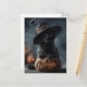 Spooky "Meowgic" Black Cat in a Witch Hat Holiday Postcard