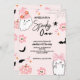 Make your little one’s first birthday extra adorable (and a little spooky!) with this Pink and Orange “Spooky One” Halloween birthday invitation. Featuring a cute, smiling ghost, playful retro fonts, cheerful pastel pink and bold orange tones, this whimsical design is perfect for a baby girl’s October birthday party.