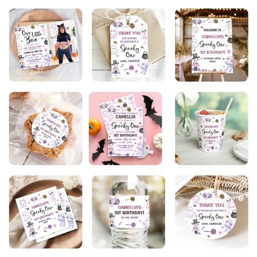 Spooky One Girls Halloween 1st Birthday Photo Invitation