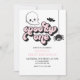 Spooky One Halloween 1st birthday invitation with ghost, bat and spider.