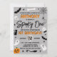 These fun and stylish invitations are perfect for anyone celebrating a first birthday this Halloween. The design features everything spooky from a black cat with flying bats to a spider's cobweb, ghosts, a witches broomstick, skull & bone, magic glass ball and a jack-o-lantern pumpkin all in black, white, grey and orange colours. The template wording is easy to personalise and your party guests will be in for a scare when they receive these invites in the mail!