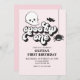Spooky One Halloween 1st birthday invitation with ghost, bat and spider.