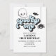 Spooky One Halloween 1st birthday invitation with ghost, bat and spider.