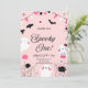 This cute Halloween-themed girl's birthday party invitation card features illustrations of a ghost, black cat, spider, bat and pumpkins. The text says, "Spooky One."