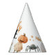 Celebrate your little one's first birthday with a touch of spooky charm! This adorable "Spooky One" themed birthday party hats feature a delightful array of cute Halloween characters, including friendly ghosts, a cute bat, pumpkins and spiders. The soft pastel colours and whimsical illustrations set a festive yet gentle tone, perfect for a first birthday celebration.
