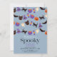 This cute "spooky one" halloween boy's 1st/first birthday invitation features a blue background with Halloween motif garlands including a black cat, bat, ghost, pumpkin, candy, witch hat, and cauldron. The reverse side features a purple background with spider web patterns. Personalise it for your needs. You can find matching products at my store.