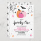 Spooky One! Halloween 1st birthday party invitation. Spooktacular birthday bash invite with pink pumpkins and stars and spiders.