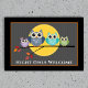 Welcome guests and trick-or-treaters with this customisable Halloween doormat. Featuring a colourful family of owls perched on a spooky tree limb, colourful fall leaves, a glowing full moon, and customisable typography that says, “Night Owls Welcome,” this doormat is perfect for adding a personal touch to your Halloween fall decor. Add a name or your own text to create a one-of-a-kind doormat to greet friends, family, and trick-or-treaters in style.