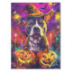 Spooky Pitbull Dog Halloween Witch And Pumpkin Tablecloth