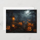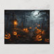Spooky place, full moon, pumpkins, Halloween night Postcard