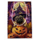 Embrace the Halloween spirit with this enchanting design featuring a cute dog in a witch hat surrounded by carved pumpkins. Perfect for adding a touch of spooky charm to your festive celebrations.