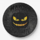Cool Black and orange Jack O'lantern Halloween party paper plates.