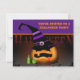 Personalise this Halloween invitation with your child's name and party information. This invitation features a unique Halloween design of a pumpkin witch. A spell that went wrong and turned the witch into a Jack O Lantern. Turn the card over to see the party details.