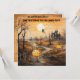 Spooky pumpkins wander away from a haunted house, as a witch and bats fly overhead on this cute and fun Halloween party invitation. The back is grungy orange, with party details. Would work for adults or teens.