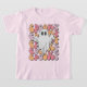 This fun and festive Halloween design features a classic ghost illustration front and centre, surrounded by the word "Spooky" repeated in a bold, bubbly font. The text is layered in vibrant, retro-inspired colours like soft pinks, purples, and oranges, creating a playful contrast against the ghost's simple white figure. The ghost's expressionless black eyes add a touch of eerie charm, while the wavy, stacked typography gives the design a groovy, nostalgic feel.