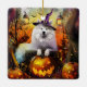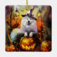 Spooky Samoyed Dog Halloween Witch And Pumpkin Ceramic Ornament
