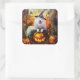 Spooky Samoyed Dog Halloween Witch And Pumpkin Square Sticker