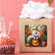 Embrace the Halloween spirit with this enchanting design featuring a cute dog in a witch hat surrounded by carved pumpkins. Perfect for adding a touch of spooky charm to your festive celebrations.