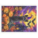 Embrace the Halloween spirit with this enchanting design featuring a cute dog in a witch hat surrounded by carved pumpkins. Perfect for adding a touch of spooky charm to your festive celebrations.