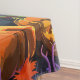I am very pleased with this purchase. The quality is good, it is heavy and the image decorating it is brilliant and very eye-catching. When I first laid eyes on this tablecloth, still folded and in the transparent covering, it brought a smile to my face and I knew right away it was a good choice. A few days later my wife replaced our old tablecloth with this little gem and was quite satisfied. She noted that it is thick and fits the table very well with just enough hang over (although our dining table is extended by a traditional leaf which we keep in place even if we are not having guests over) and stays put instead of blowing all over the place. The image decorating this tablecloth is brilliant and very eye-catching. It looks even better than it appeared online.