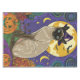 Embrace the Halloween spirit with this enchanting design featuring a cute cat in a witch hat surrounded by carved pumpkins. Perfect for adding a touch of spooky charm to your festive celebrations.