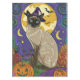Spooky Siamese Cat Halloween Witch And Pumpkin Tablecloth