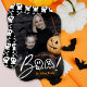 Cartoon Spooky Skull And Ghost Boo! Script Modern Halloween Photo Holiday Card.