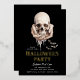 Set the tone for your Halloween party with these spooky skull Halloween party invites. The invites feature a watercolor illustration of hands holding a skull with bats flying around. "Halloween Party" is displayed in scary gold foil lettering with a black background. Personalise the foil Halloween party invites with your party details below.