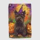 Spooky Skye Terrier Dog Halloween Witch Pumpkin Golf Towel