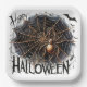 This Creepy Spider Web Halloween Paper Plate will add Whimsical Charm to your Festive Holiday Table! The Artwork features an impressive Cob Web with a Narly Spider perched upon it. Bats fill the Night Sky. The verse says, "Happy Halloween."