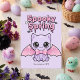 Celebrate spring with a spooky twist! This pastel goth greeting card features an adorable lavender bat with a pink satin bow and tiny skeleton ribs. The dripping "Spooky Spring" text adds the perfect alternative Easter vibe for anyone who loves kawaii dark aesthetics.