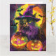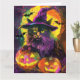 Spooky Turkish Angora Cat Halloween Witch Pumpkin Card