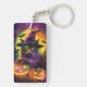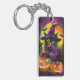 Spooky Turkish Angora Cat Halloween Witch Pumpkin Key Ring
