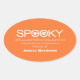 Simple and modern Spooky Typography Halloween Baking Label Stickers in orange and white featuring a cool text design with two whimsical ghosts peeking through the word "Spooky." These sassy Halloween stickers offer a fun way to seal and/or label all of those homemade Halloween goodies. Easy to customise, add your own spooky text! Click on the "Customise It" button to move the design element, change the fonts or text colours, and add/remove additional text.