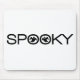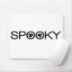 Simple and modern Spooky Typography Halloween Mousepad in white and black featuring a cool text design with two whimsical ghosts peeking through the word "Spooky." This sassy mouse mat is a fun way to show your Halloween spirit and spruce up your work area! Easy to customise, simply add your own spooky text! Click on the "Customise It" button to move the design element or add your own personalised text.